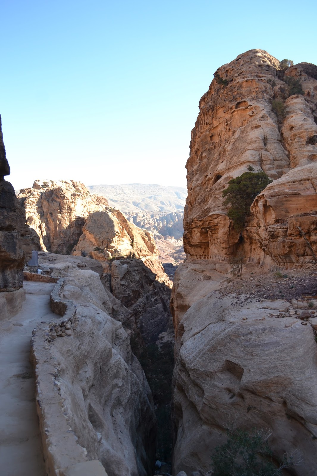 Al igual que el cañón de Siq, el camino al Monasterio o Al-Deir era sinuoso y muy estrecho, pero esta vez en subida, lo que le daba aún más solemnidad al camino,